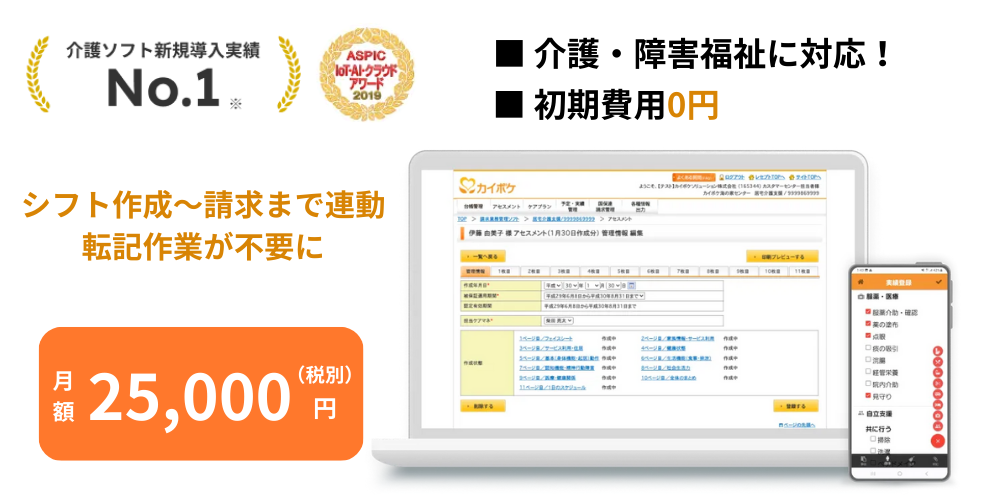 - 介護保険・障害者総合支援の介護記録に対応